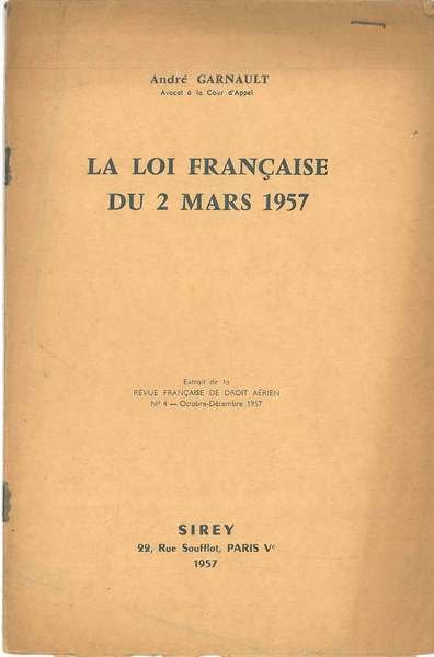 La loi française du 2 mars 1957 Estratto dalla "Revue française de droit aérien"