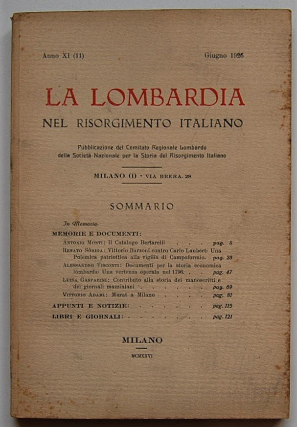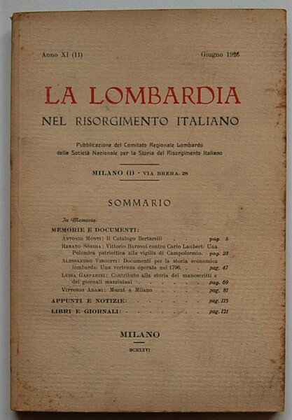 LA LOMBARDIA NEL RISORGIMENTO ITALIANO. ANNO XI. GIUGNO 1926.