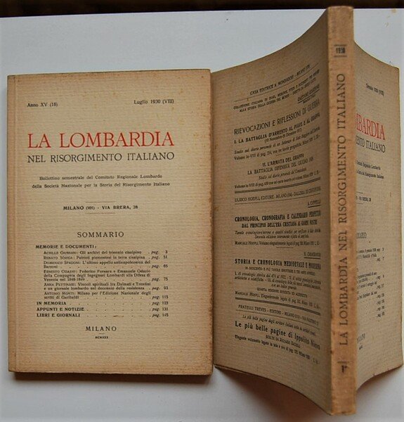 LA LOMBARDIA NEL RISORGIMENTO ITALIANO. ANNO XV. GENNAIO E LUGLIO 1930.