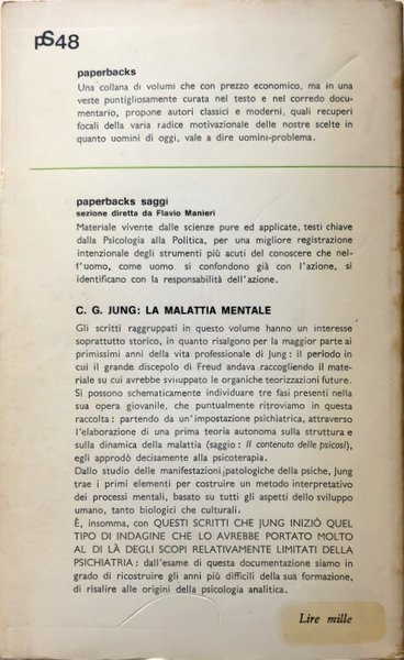Soggetti: Psicologia analitica, Classici, Psichiatria, Medicina, Libri vintage, Fuori catalogo, Opere, Psicogenesi delle malattie mentali, Patologie, Nevrosi, Disturbi psichici, Psiche, Mente, Cervello, Comportamento, Terapie, Cure, Psicoterapia, Psicoanalisi, Analisi, Raccolte, Scritti giovanili, Sigmund Freud, Flavio Manieri, Filosofia, Psicopatia, Biologia, Inconscio, Archetipi, Sogni, Fenomeni occulti, Indagini, Teorie, Psicosi, Formazione, Sviluppo umano, Cultura, Alienazione mentale, Simulazione, Neumann, Dementia praecox, Squilibrio affettivo maniacale, Schizofrenia, Negativismo schizofrenico, R. Loy, Lettere, Carteggi, Psicogenesi, Abreazione, Saggi, Bleuler, Novecento, Funzione trascendente, Eranos, Socionica, Ombra, Tipi psicologici, Introversione, Martin Buber, Estroversione, Perizie, Casi clinici, Personalità, Borderline, Anima, Psychiatric Studies, Miscellaneous Writings, The Psychogenesis of Mental Disease, Analytical psychology, Classics, Psychiatry, Medicine, Out-of-print books, Works, Psychogenesis of mental illnesses, Pathologies, Neurosis, Mental disorders, Psyche, Mind, Brain, Behavior, Therapies, Cures, Psychotherapy, Psychoanalysis, Analysis, Collections, Youth writings, Philosophy, Psychopathy, Biology, Unconscious, Archetypes, Dreams, Occult phenomena, Investigations, Theories, Psychosis, Training, Human development, Culture, Mental alienation, Simulation, Manic affective imbalance, Schizophrenia, Schizophrenic negativism, Letters, Charts, Psychogenesis Abreaction, Essays, Twentieth Century, Transcendent Function, Socionics, Shade, Psychological Types, Introversion, Extroversion, Appraisals, Clinical Cases, Personality