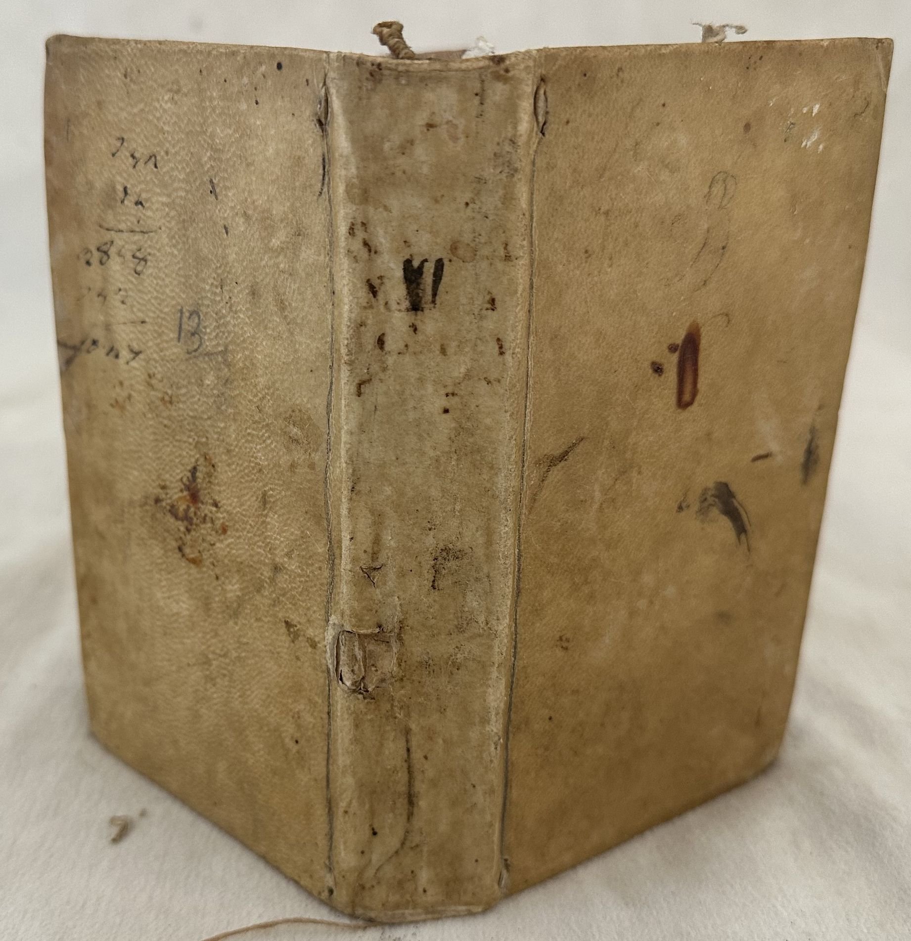 Edizione veneziana del 1777 di questa opera spirituale di Paolo Segneri (1624-1694). L'opera era composta da sei volumi, siamo in possesso solo del sesto e ultimo tomo contenente meditazioni relative al mese di novembre e dicembre. Tra le meditazioni presenti: Predestinazione, punizioni dell'inferno, Immacolata concezione, ricchezze spirituali e corporali, Santissimo Natale, Santo Stefano, Utilità delle Divine Scritture, Santissima Trinità ecc. In buone condizioni. Copertina in piena pergamena coeva con segno manoscritto al dorso in buone condizioni generali con lievi usure ai margini e dorso. Legatura in buone condizioni. All'interno le pagine si presentano in buone condizioni con fioriture. Macchia di inchiostro all'angolo superiore destro delle prime 22 pagine. con leggera perdita di testo. In 16. cm 15,5x9. Pp. 400. Peso Kg. 0,200Venetian edition of 1777 of this spiritual work by Paolo Segneri (1624-1694). The work was made up of six volumes, we only have the sixth and last tome relating meditations of the month of november and december. The meditations inside: Predestination, punitions in the hell, Immaculate Conception, spiritual and body richnesses, Very Holy Christmas, Santo Stefano, Holy Writings, Very Holy Trinity ecc. In good conditions. Full parchment coeval cover with handwritten sign in the spine in good general conditions lightly worn in the extremities. Binding in good conditions. Pages in good conditions with foxing. Ink stain in the upper right corner of the first 22 pages with light loss of text. In 16. cm 15,5x9. Pp. 400. Peso Kg. 0,200<BR><BR> <BR><BR>