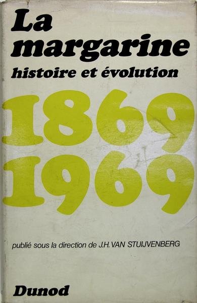 Edition Dunod, Paris, 1969. In-8 (24 x 16 cm) reliure éditeur jute sous jaquette imprimée, quelques planches en noir, 327 p., 8 f. n.p. Menus défauts en jaquette. Cet ouvrage paru à l'occasion du centenaire de la margarine, a voulu illustrer le processus de production des matières premières au produit fini. Dans ce cadre sont traitées notamment l'évolution de la technologie et de la recherche scientifique, l'expansion du marché et l'intervention des pouvoirs publics.