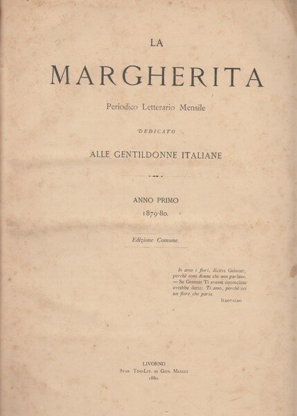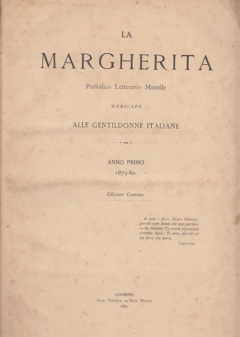 La Margherita Periodico Letterario Mensile dedica alle gentildonne italiane. Anno primo 1879--80 numeri 1-12 , anno secondo 1880 numeri 1-6