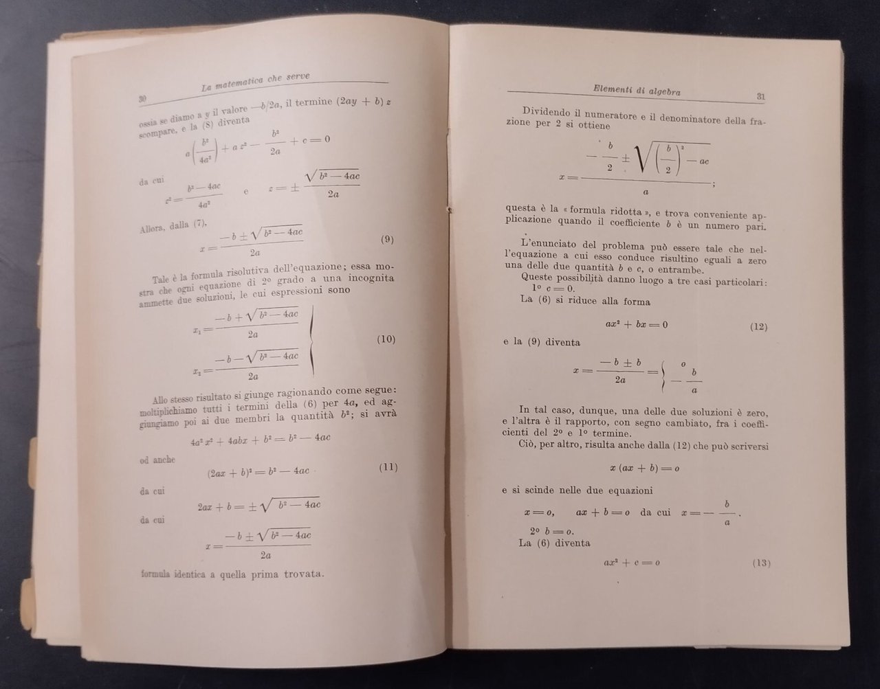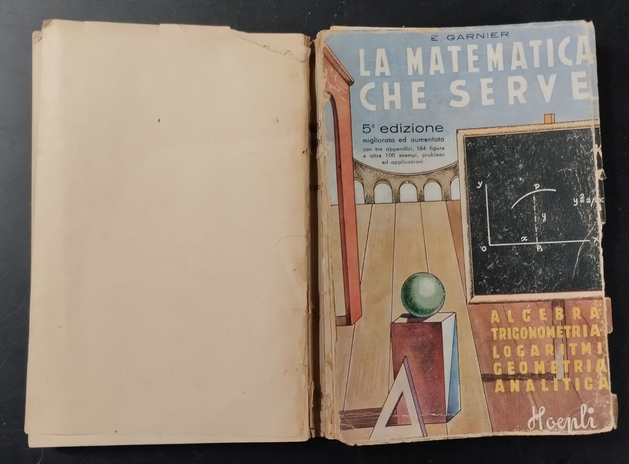 LA MATEMATICA CHE SERVE di Garnier 1945 Hoepli Libro algebra trigonometria geome