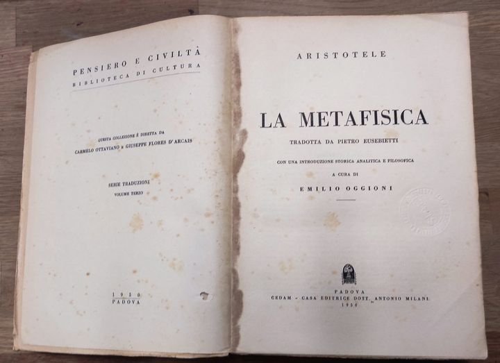 La metafisica, tradotta da Pietro Eusebietti ; con una introduzione storica analitica e filosofica a cura di Emilio Oggioni | Libri antichi e moderni | Aristoteles, ,Aristoteles