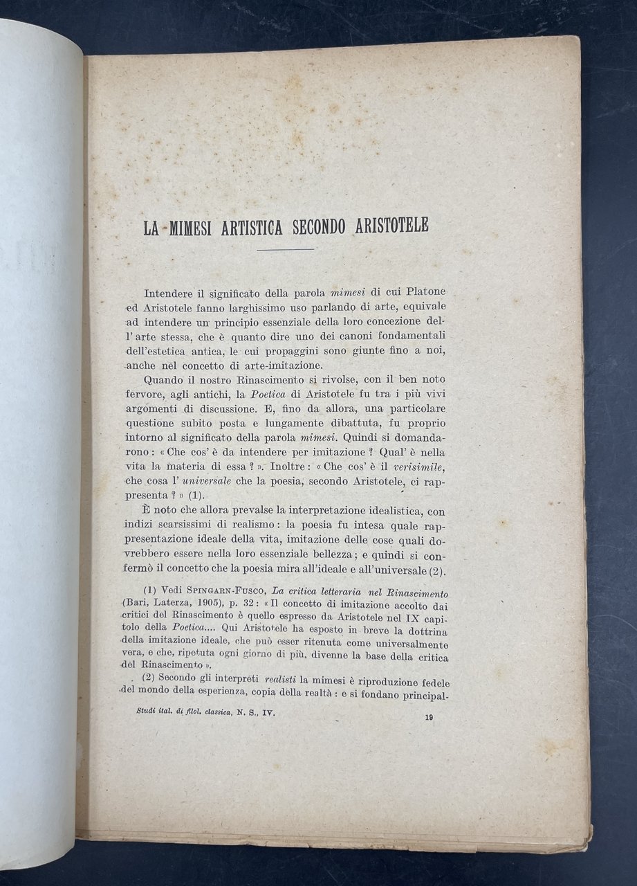 La MIMESI ARTISTICA secondo ARISTOTELE. Corposo stralcio da Studi italiani di Filologia Classica, n. s. IV.