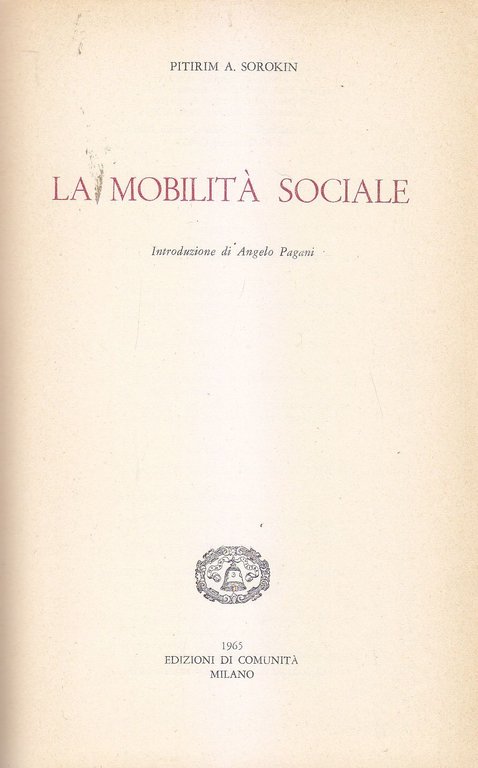 LA MOBILITÀ SOCIALE di Pitirim Sorokin 1965 Edizioni di Comunità libro usato