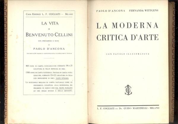 IN 8°,pp.X+394, CON NUMEROSE ILLUSTRAZIONI DI CAPOLAVORI f.t. IN SEPPIA. DEDICA A<BR>LIONELLO VENTURI. INDICE DEI SAGGI : CLASSICISMO E NEOCLASSICISMO - ROMANTICISMO - <BR>FILOLOGIA E STORIA - DEL REALISMO E DALL'IMPRESSIONISMO AL MOVIMENTO NEOCLASSICO CONTEMPORANEO - IDEALISMO. BELLA RILEGATURA IN MEZZA PELLE MARRONE CON TITOLO E FREGI IN ORO E NERVATURE,PIATTI RIGIDI CON CARTA DECORATA ESEGUITA DA BETTI ARTIGIANO RILEGATORE IN PISA. ID 878<BR> PERFETTA CONSERVAZIONEID 878<BR>