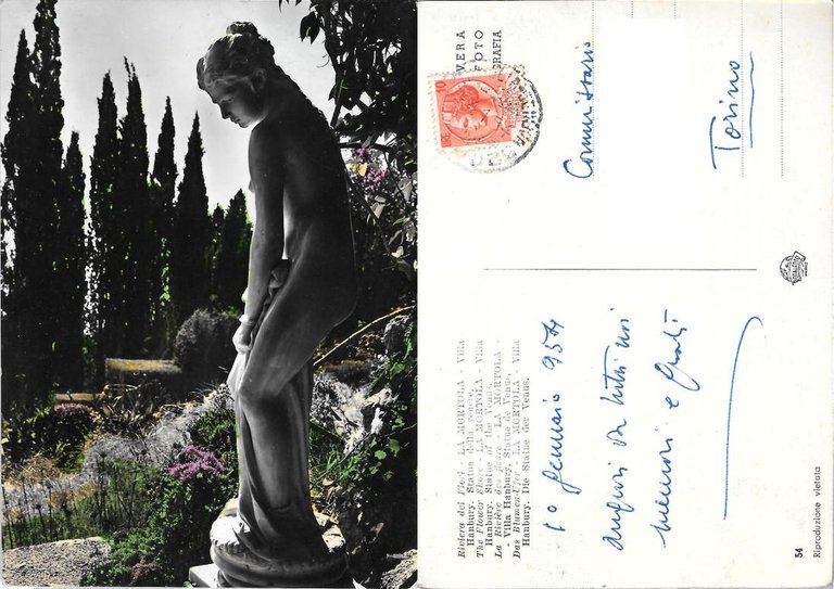 La Mortola (IM). Villa Hanbury. Statua della Venere . Viaggiata 1954