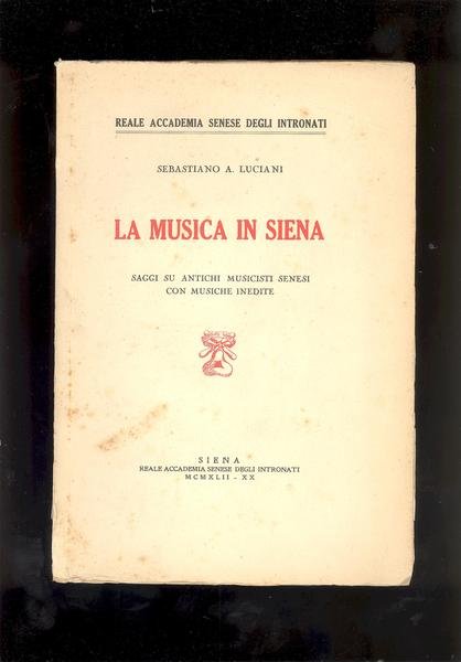 IN 8°, pp.78, INDICE. COPERTINA EDITORIALE CON TITOLO IN ROSSO. I PRIMI DOCUMENTI SULLA VITA MUSICALE IN SIENA, RISALGONO AL 1255 E CELEBRANO LA PRESA DEL CASTELLO DI TORNIELLO, AD OPERA DI UN CANTASTORIE COMMESSA DAI REGGITORI DEL COMUNE.OPERA RARA TIRATA IN 300 ESEMPLARI. NS.n° 233 / 300.PUBBLICAZIONE DELLA REALE ACCADEMIA DEGLI INTRONATI, NEL X ANNIVERSARIO DELLA FONDAZIONE DELL'ACCADEMIA MUSICALE CHIGIANA. PICOLA MANCANZA AL PIEDE DEL DORSO, ALTRIMENTI OTTIMA CONSERVAZIONE. ID 3752