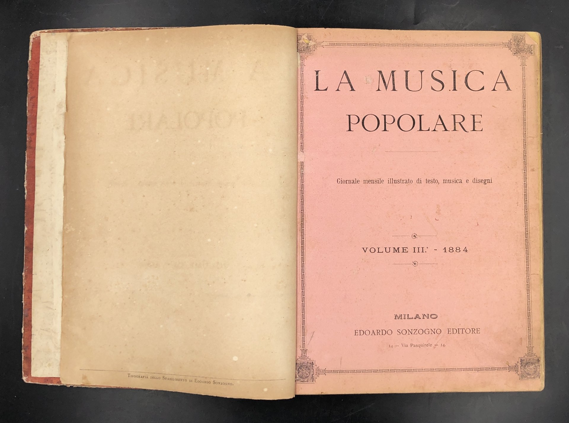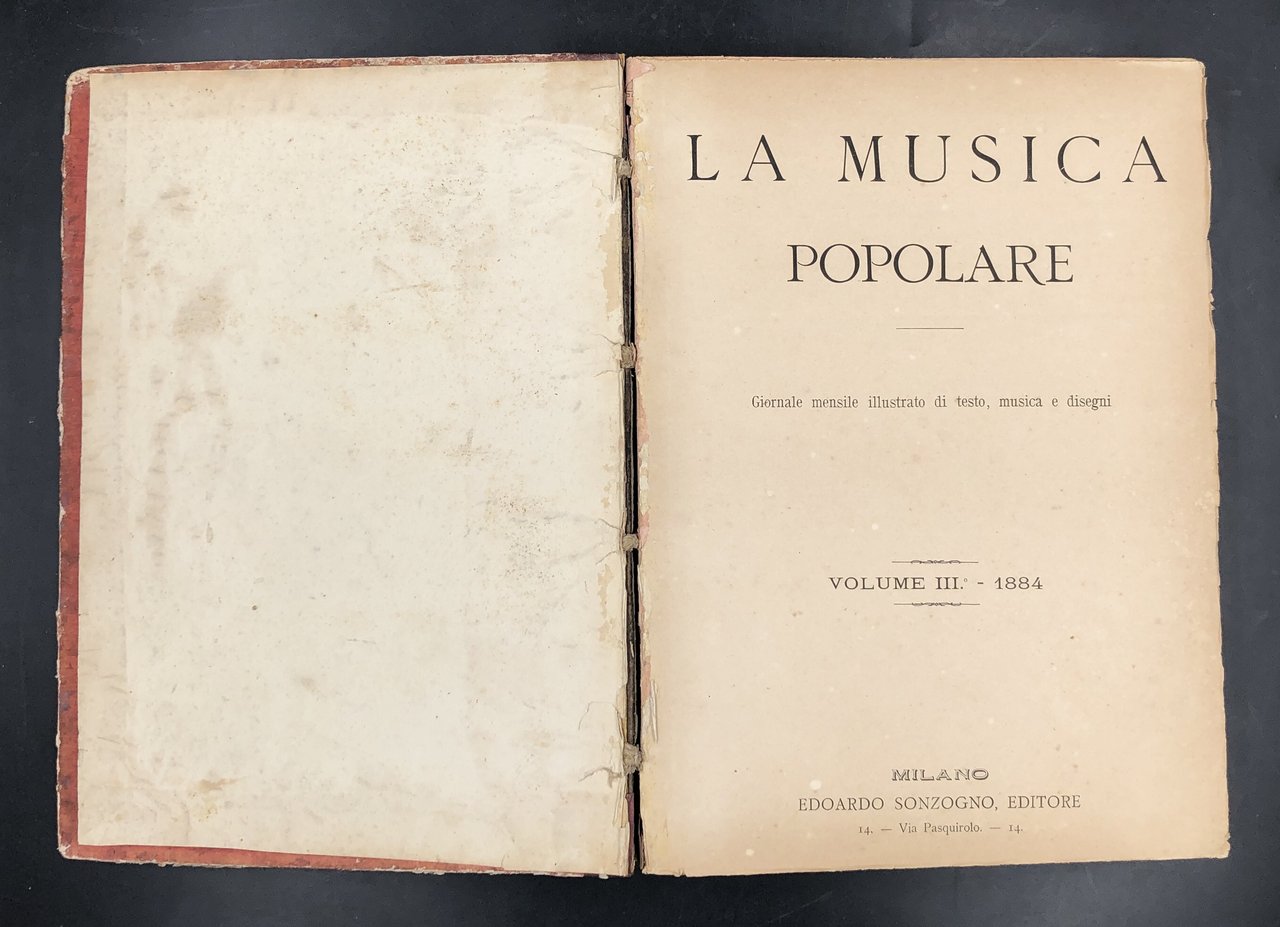 La MUSICA POPOLARE. Giornale mensile illustrato di testo, musica e disegni. La terza ANNATA COMPLETA, 1884.