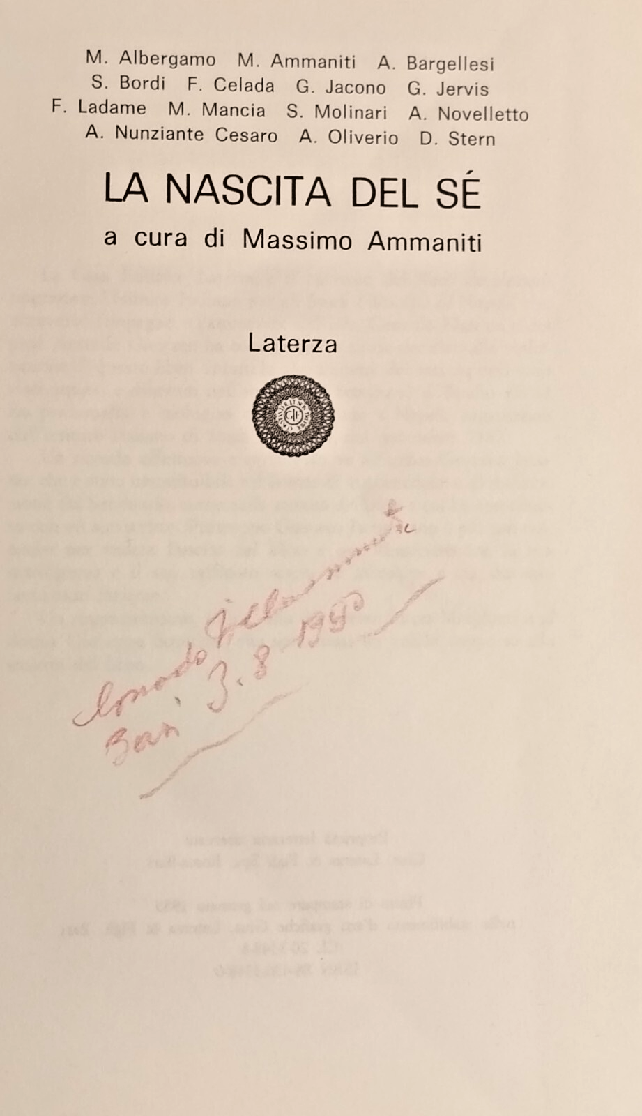 LA NASCITA DEL SÈ a cura di Massimo Ammaniti. Laterza Editore, 1989 . 214 pagine. Copertina editoriale in brossura. Stato di conservazione: molto buono (pagine normalmente ingiallite, firma di appartenenza) Libro usato saggistica psicologia psicoanalisi