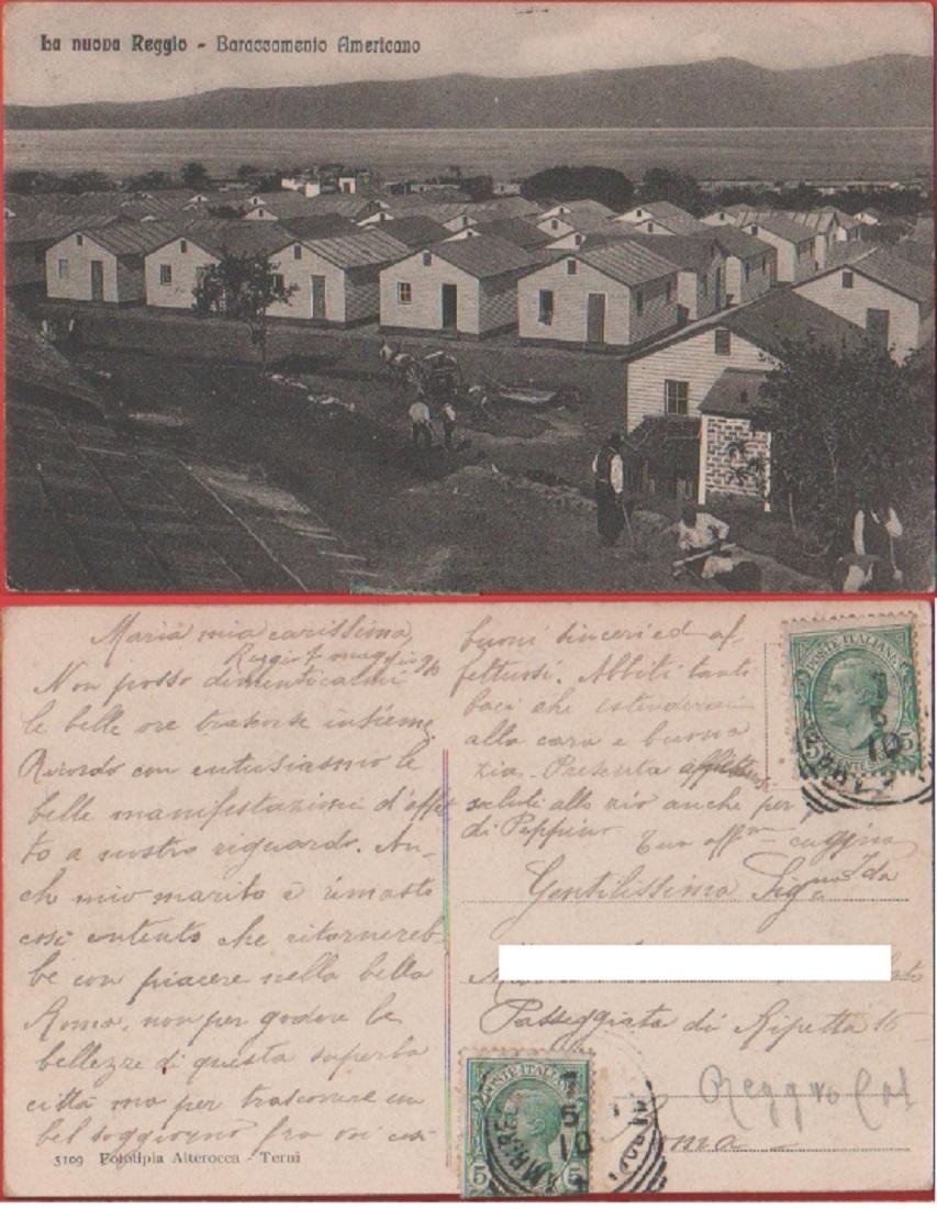 La nuova Reggio (Reggio Calabria). Baraccamento Americano. Viaggiata 1910. ed, Altercocca