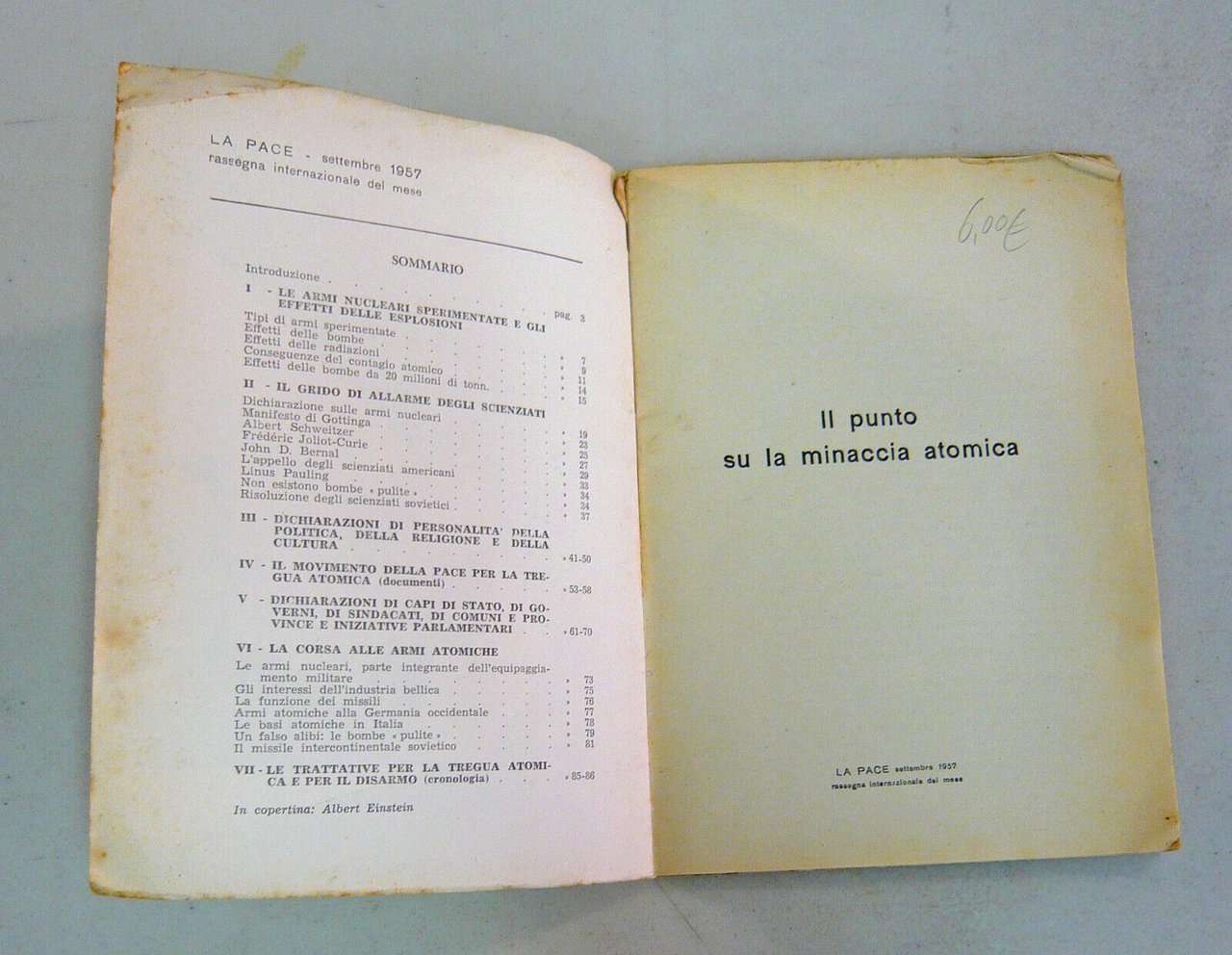 LA PACE-settembre 1957.IL PUNTO SU LA MINACCIA ATOMICA[armi nucleari