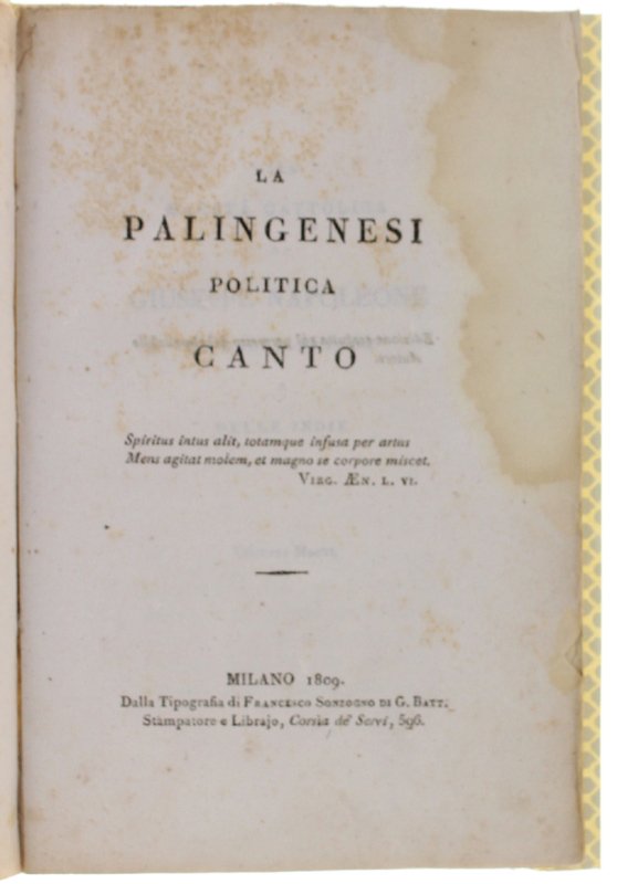 (Codice LE/1066) In 8° 32 pp. Dedicata "Alla Maestà Cattolica di Giuseppe Napoleone, Re delle Spagne e delle Indie". Edizione contemporanea all'originale dello stesso anno. Brossura, copertina in carta di Varese. Leggero alone marginale, ma in ottimo stato. ~~~ SPEDIZIONE IN ITALIA SEMPRE TRACCIATA