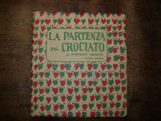 In-16° carrè, pp. 40, frontespizio figurato e 16 divertenti tavole a colori di Aldo Mazza, cartonatura editoriale con titolo impresso in verde e decori impressi in rosso ed in verde. Prima edizione come volume a sè stante. La nota poesia era apparsa in precedenza all'interno dei 'Ricordi di Gioventù'. Il Visconti Venosta la compose quasi per caso, allorché, nel 1856, uno studente di Tirano, dove soggiornava, si rivolse a lui per un suo mancato compito scolastico, appunto una poesia che doveva avere per tema la partenza di un crociato per la Palestina.