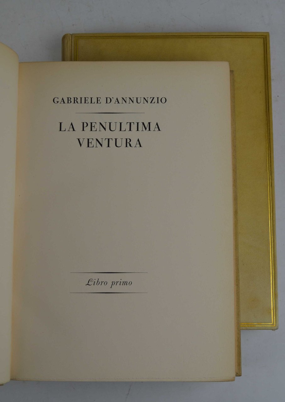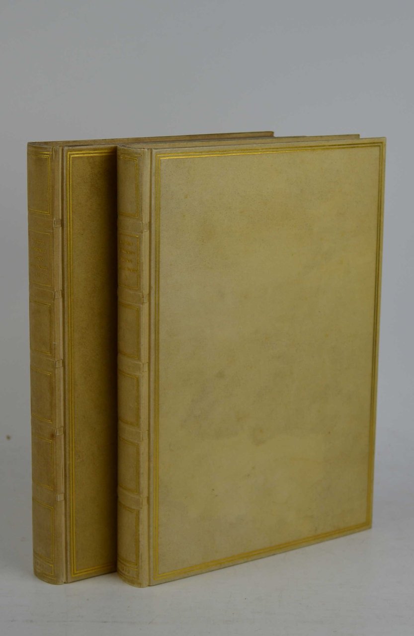 Due volumi di cm. 25, pp. (12) 332 (10); 211 (11). Legatura editoriale "in intiera pergamena, a fregi d'oro col taglio superiore dorato e col segnaletto di seta dai due colori del Comandante azzurro e rosso". Ottimo stato di conservazione. Volumi appartenenti all'edizione promossa dall'Istituto Nazionale per la Edizione di Tutte le Opere di Gabriele D'Annunzio. La direzione fu di Arnoldo Mondadori, la cura del testo di Angelo Sodini, la stampa e la composizione sotto la supervisione di Hans Mardersteig e Remo Mondadori. Impresso con caratteri della stamperia originale di Giambattista Bodoni, su carta velina di Fabriano in edizione limitata e numerata. Il presente esemplare porta il n. 212.