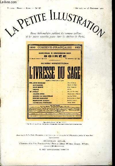 La petite illustration - nouvelle série n° 126 - théatre n° 83 - L'ivresse du sage, comédie en trois actes par François de Curel, représentée pour la première fois le 5 décembre 1922 a la comédie française