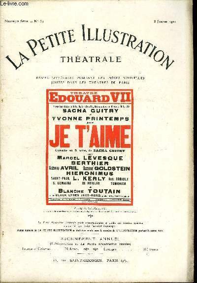 La petite illustration théatrale - nouvelle série n° 34 - Je t'aime, comédie en cinq actes par Sacha Guitry, représentée pour la première fois, le 12 octobre 1920 au théatre Edouard VII