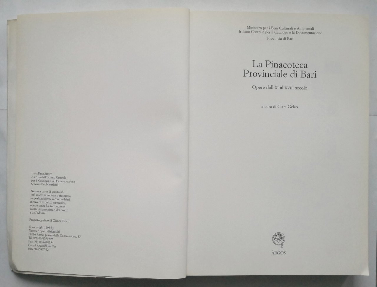LA PINACOTECA PROVINCIALE DI BARI a cura di Clara Gelao 1998 Argos Libro quadri
