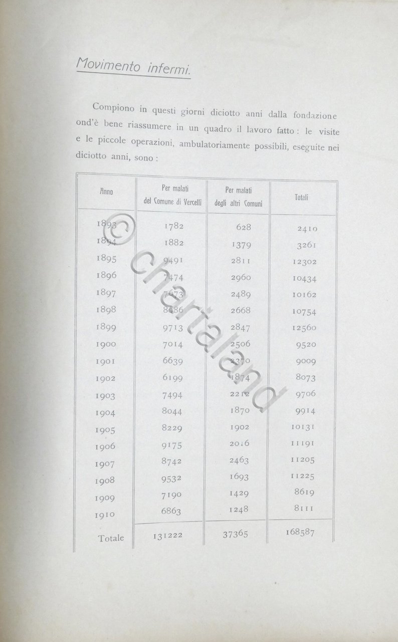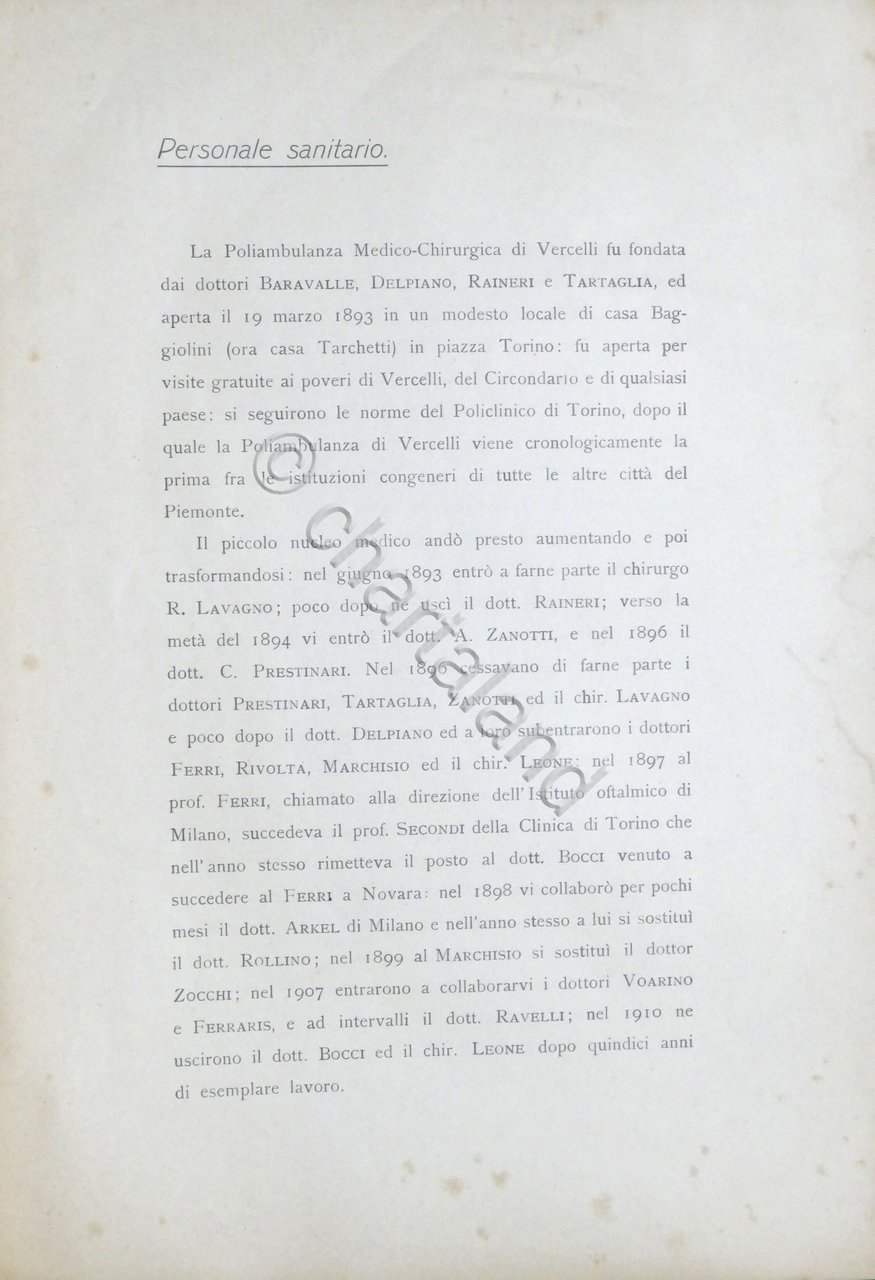 La Poliambulanza Medico-Chirurgica di Vercelli dal 1893 al 1910 - ed. 1911