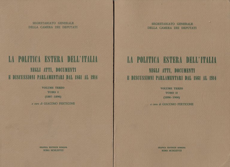 Volume terzo, tomo I (1887 - 1896), e tomo II (1896 - 1900) Ottimo (Fine) .
