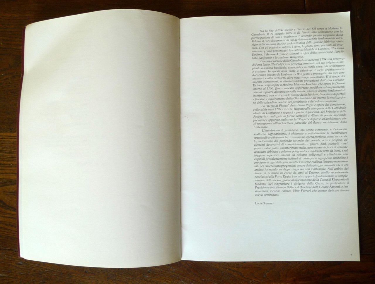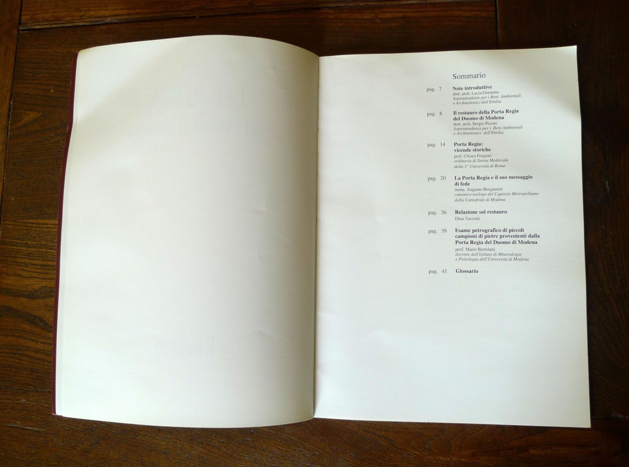LA PORTA REGIA DEL DUOMO DI MODENA.IL RESTAURO.Fondazione Cassa di Risparmio di Modena, 1991,brossura, 30x21 cm., pp.41,illustrazioni in nero e a colori,peso: g.400cod.9336CONDIZIONI DEL LIBRO: molto buone,imperfezioni alla copertina