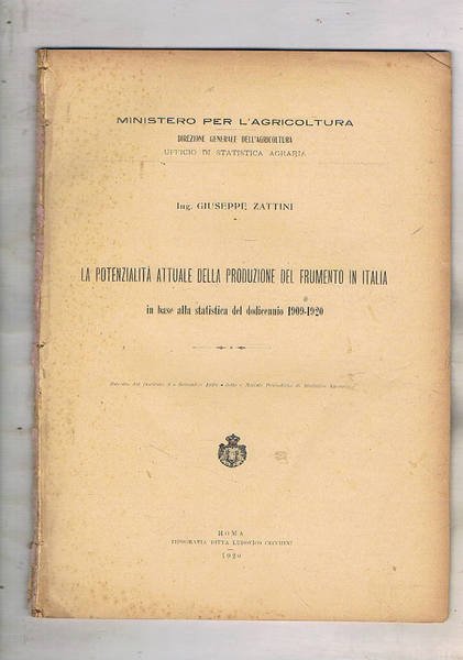 La potenzialità attuale della produzione del frumento in Italia in base alla statistica del decennio 1909-1920.