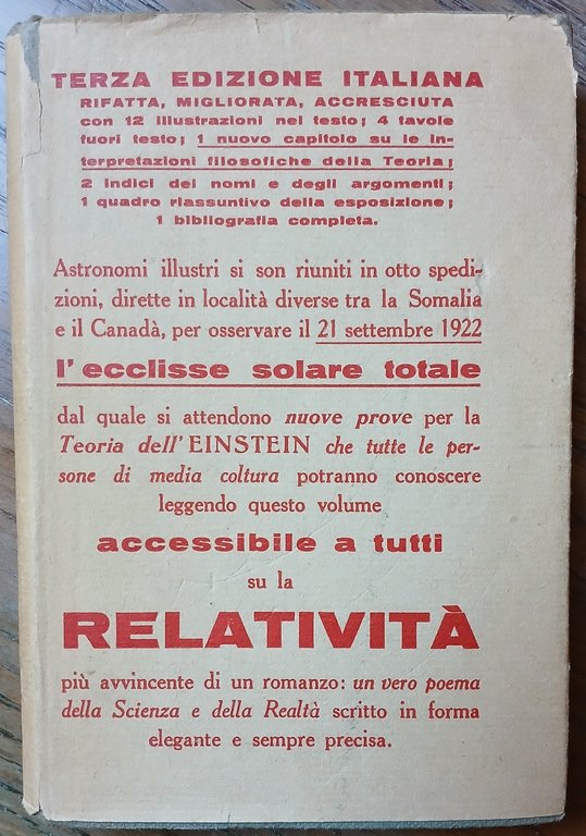 La prima conoscenza della relatività dell'Einstein accessibile a tutti. Terza edizione italiana riveduta ed ampliata, con figure e tavole.