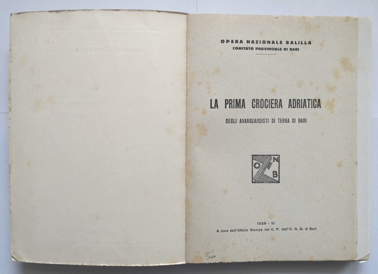 LA PRIMA CROCIERA ADRIATICA degli avanguardisti di Terra di Bari. Opera Nazionale Balilla, Comitato Provinciale di Bari.