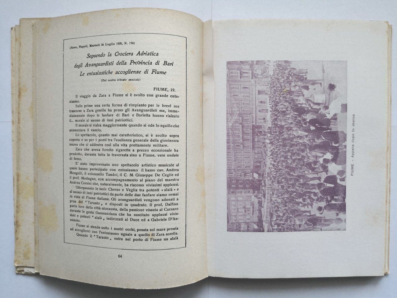 LA PRIMA CROCIERA ADRIATICA DEGLI AVANGUARDISTI TERRA BARI 1928 Trizio Libro