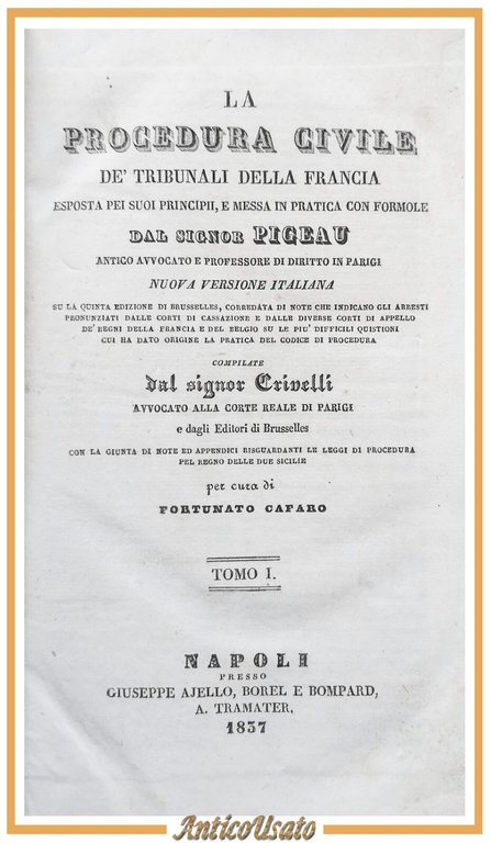 LA PROCEDURA CIVILE TRIBUNALI DELLA FRANCIA di Pigeau 3 volumi compl 1837 libro