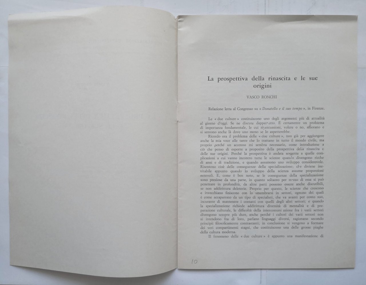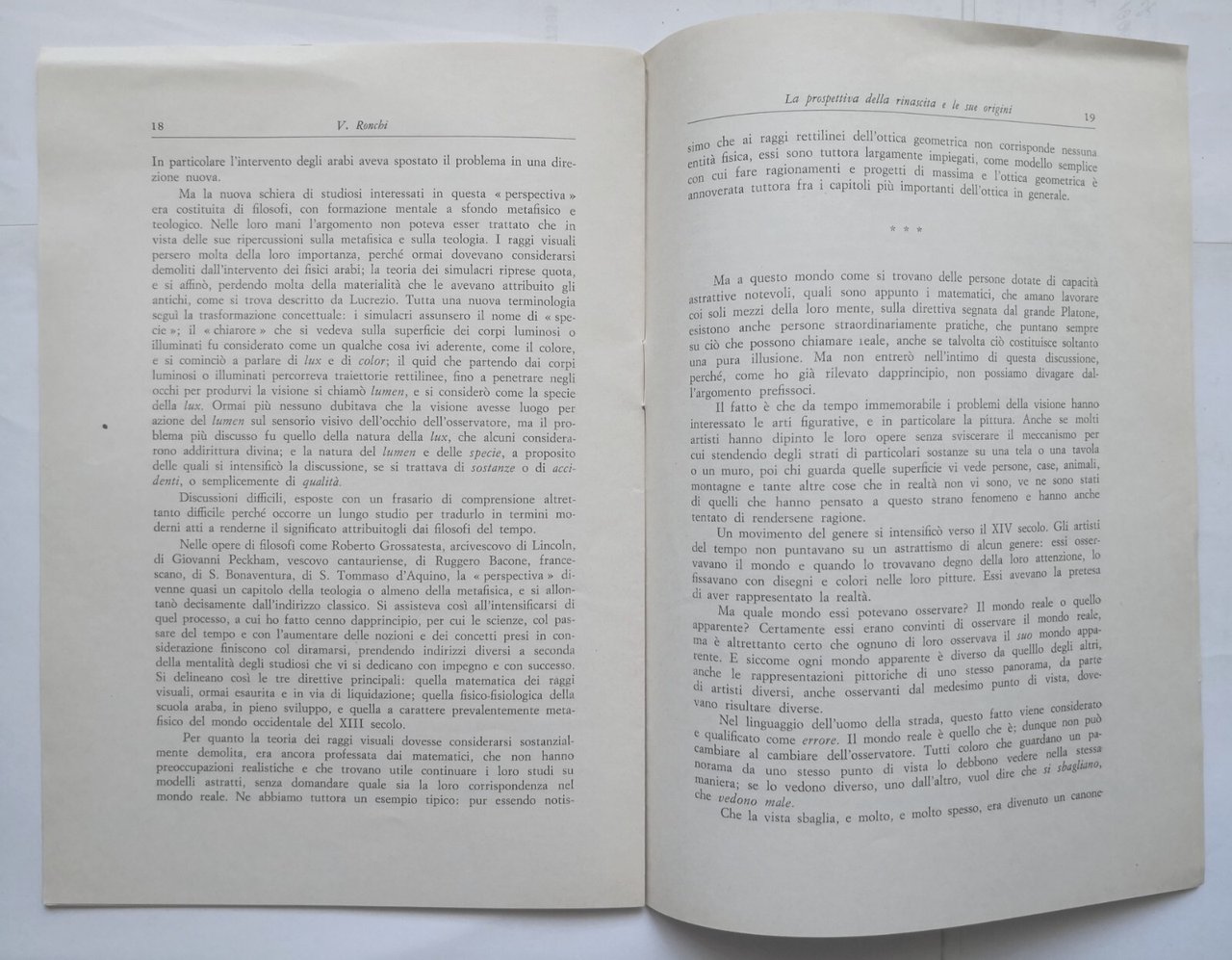 LA PROSPETTIVA DELLA RINASCITA E LE SUE ORIGINI di Vasco Ronchi 1969 estratto