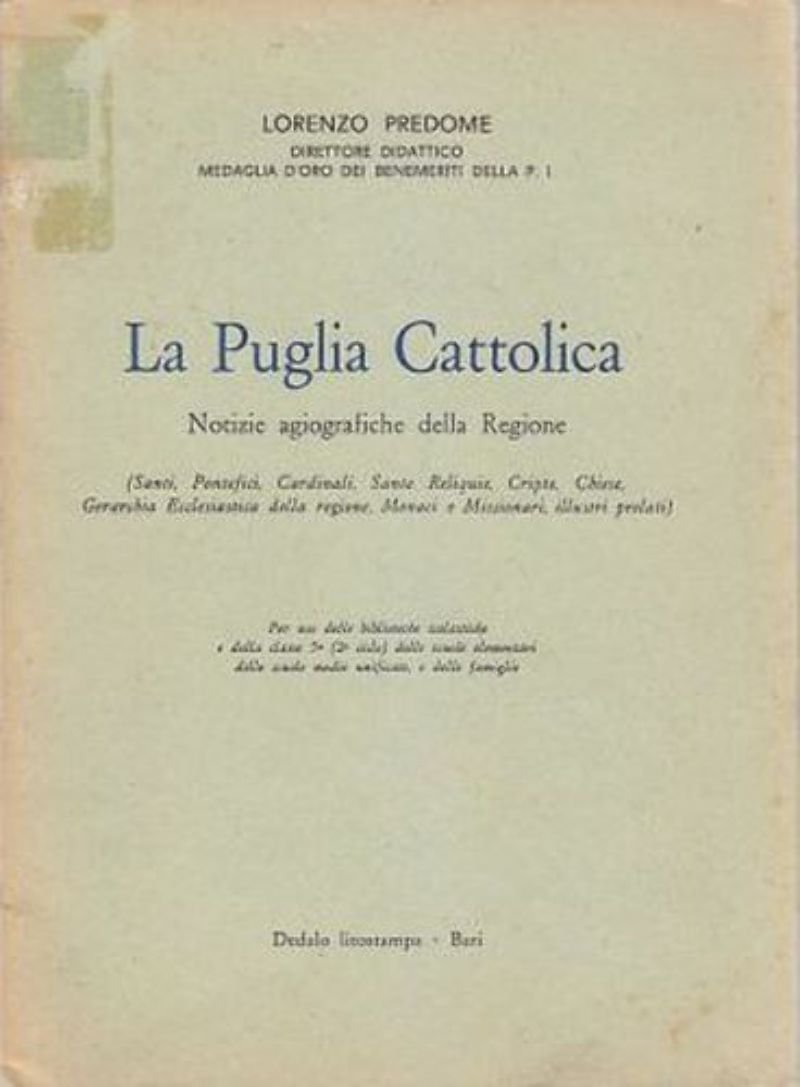 LA PUGLIA CATTOLICA NOTIZIE AGIOGRAFICHE DELLA REGIONE di Lorenzo Predome Dedalo editore, anni ‘70.