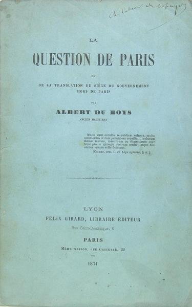 La question de Paris ou De la translation du siège du gouvernement hors de Paris