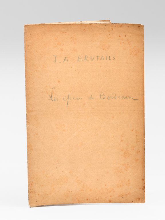 Envoi ms. de l'auteur en coin de première page, 7 pp. in-8 , extrait de la Revue philomatique de Bordeaux et du Sud-Ouest n° 3 , 1er février 1898. Bon état pour cette petite étude par Jean-Auguste Brutails (1859-1926), qui fut le directeur des Archives départementales de la Gironde, de 1889 à 1926. Les "épées de Bordeaux" évoquées en titre, Font référence aux armes blanches de Bordeaux évoquées dans les textes médiévaux et dont le taillant, dixit le chroniqueur Froissart "était si âpre et si dur que plus ne pouvait".