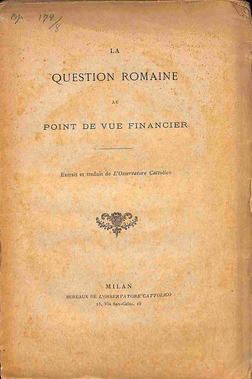 La question romaine au point de vue financier