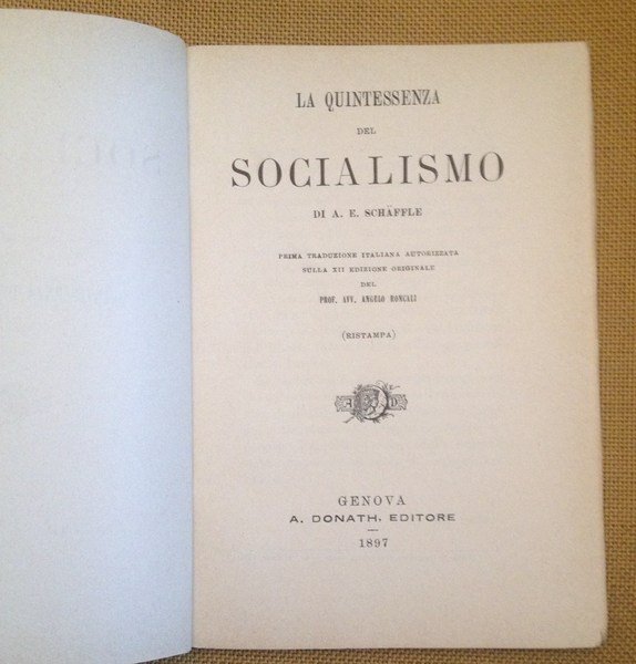 La quintessenza del socialismo. Prima trad. del Prof Angelo Roncali.