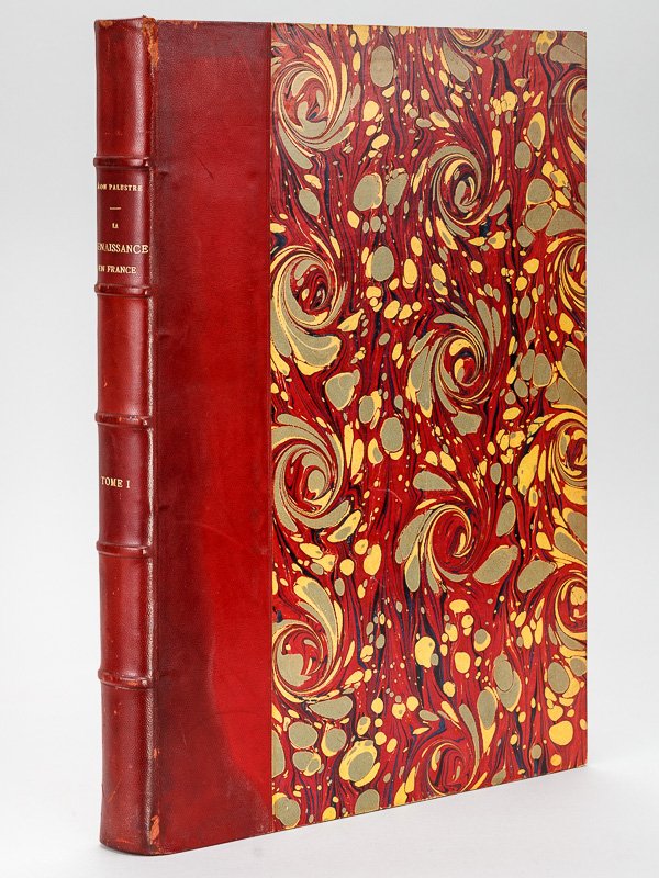 1 vol. in-folio reliure de l'époque demi-chagrin rouge, dos à 5 nerfs, tête dorée, couvertures conservées, A. Quantin, Paris, 1879, VIII-234 p. Impressionnant premier tome des 3 volumes consacrés à la Renaissance en France par Léon Palustre. Etat satisfaisant (mouill. à la reliure en dos et mors, très bon état intérieur) pour cette très belle impression, aux belles eaux-fortes imprimées sur très épais papier vergé. Prix en l'état. Voir également dans notre catalogue les tomes 2 et 3