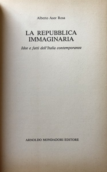 LA REPUBBLICA IMMAGINARIA. IDEE E FATTI DELL'ITALIA CONTEMPORANEA