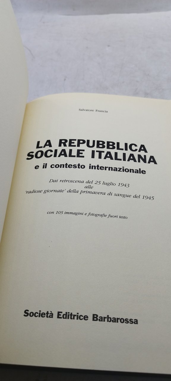 salvatore francia la repubblica sociale italiana e il contesto intenrazionale. , societa' editrice barbarossa 1995 italiano, °°°
