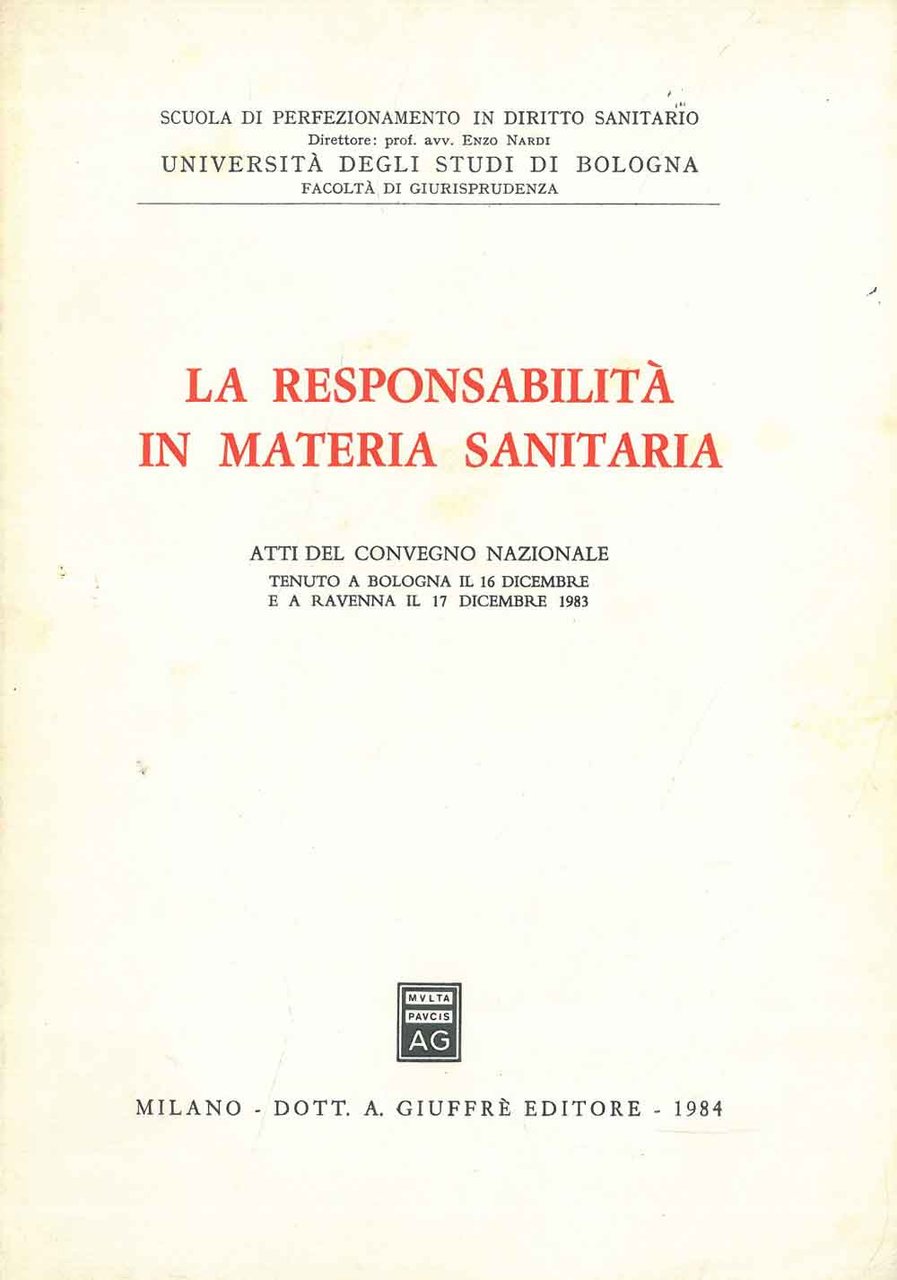 La responsabilità in materia sanitaria. Convegno: Bologna, dicembre 1983