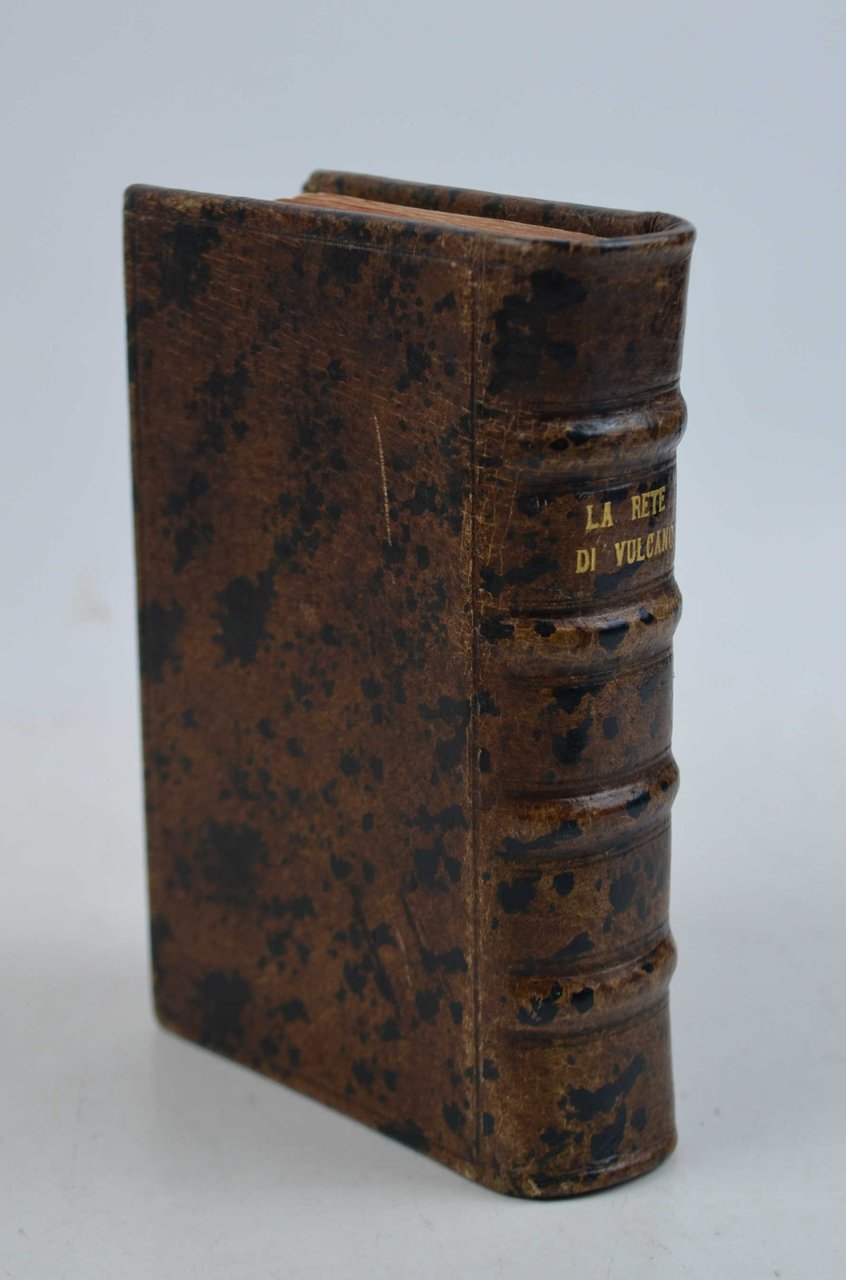 Cm. 12,5, pp. (22) 372. Unito a (dello stesso autore): L'anima. Ultima impressione, In Villafranca, 1643 (i.e.1663) di pp. 123 (1) e a Dell'anima. Vigilia Seconda, In Villafranca, 1665. Leg. novecentesca in piena pelle, dorso a nervi con titoli in oro. Testatine e capolettera decorati. Ogni opera con proprio frontespizio ciascuno con diversa incisione. Lieve gora alla parte inferiore centrale delle carte e due carte (bianche) mancanti in fine, peraltro esemplare ben conservato.