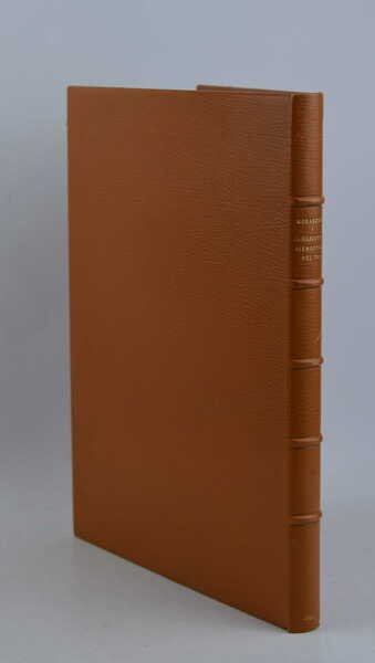 Cm. 30, pp. 69 (5). Con 110 illustrazioni su 60 tavole f.t. Bella legatura del tempo in pieno marocchino colori nocciola. Dorso a nervi con titoli in oro, Brossura originale preservata all'interno. Perfetta conservazione. Edizione a tiratura limitata di soli 300 esemplari (n. 262).