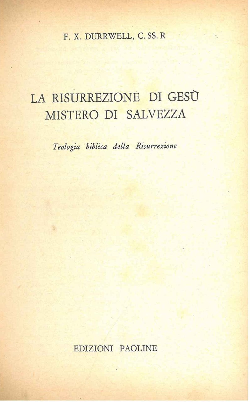 La rissurrezione di Gesù mistero di salvezza. Teologia biblica della Risurrezione