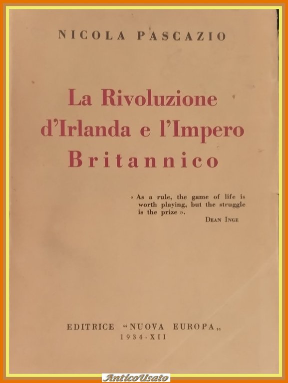 LA RIVOLUZIONE D'IRLANDA E L'IMPERO BRITANNICO di Pascazio 1934 Libro