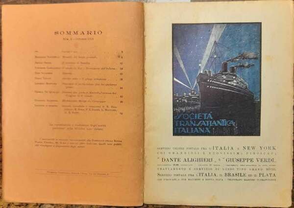 <p>23,5 cm, brossura originale illustrata con un disegno di Armando Spadini (tamburino); p. (8) di pubblicità, 73. Contributi di E. Cecchi, R. Bacchelli, V. Cardarelli, C. Linati, G. Raimondi ed altri</p>