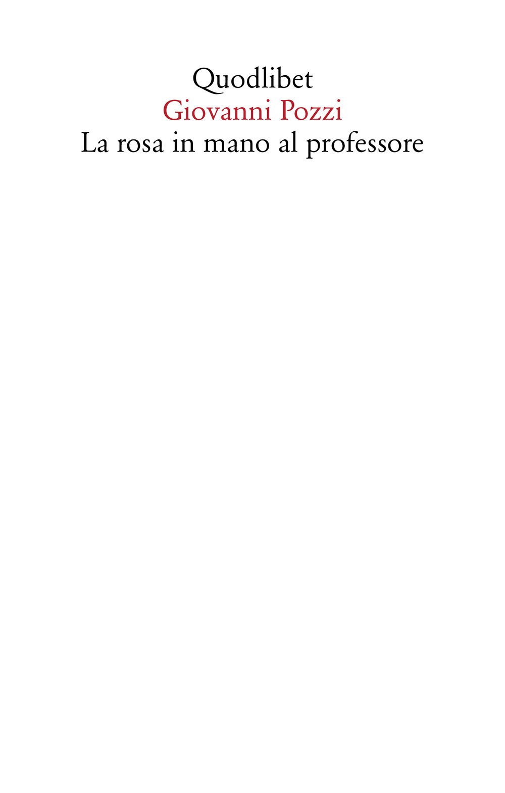 «Il professor De Sanctis cammina attraverso i secoli centrali della letteratura italiana, attraverso quei secoli che più drammaticamente impegnano le sorti del suo ideale – cammina, dico, con una rosa in mano». Così, fissandolo in una sorta di emblema araldico, Giacomo Debenedetti ha una volta raffigurato Francesco De Sanctis, che nella Storia della letteratura italiana ritorna a più riprese sul motivo della rosa come simbolo della bellezza muliebre tra umanesimo e barocco, da Lorenzo e Poliziano ad Ariosto e Tasso, sino a Marino. A partire dallo spunto di Debenedetti, Giovanni Pozzi allestisce un ampio dossier di testi e lo esamina con minuzia, rinvenendo categorie che combinano originalmente la tematologia con la lezione dello strutturalismo. La rosa in mano al professore, qui ripubblicato per la prima volta dopo la sua uscita nel 1974, inaugura per molti versi la grande stagione saggistica del Pozzi maturo: sia per la qualità stilistica della prosa, sia per il taglio d’analisi. In questo «erbario», in cui la pietas del filologo ricompone i petali delle rose, ormai sfiorite, della nostra letteratura, trova una prima sperimentazione il metodo adottato da Pozzi nei successivi studi sui topoi letterari.