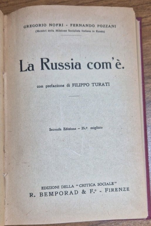 LA RUSSIA COM’È di Gregorio Nofri e Fernando Pozzani Libro Bemporad II edizione