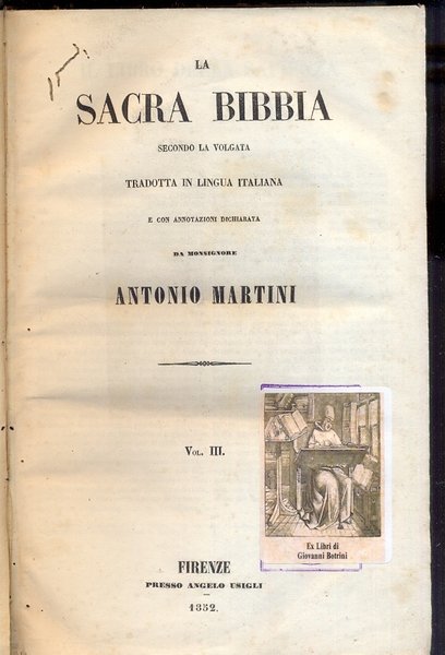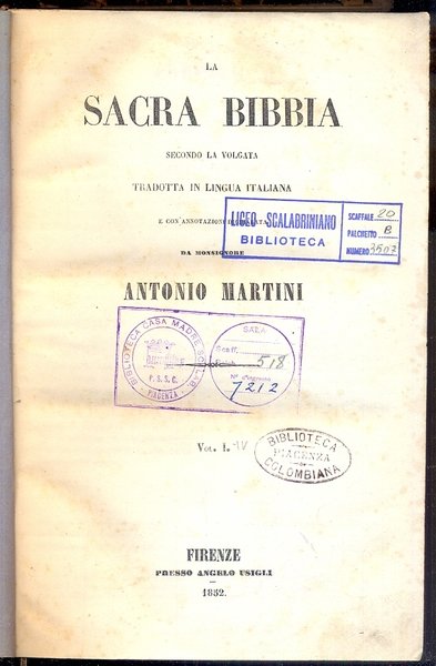 La Sacra Bibbia secondo la volgata. Tradotta in lingua italiana.